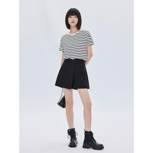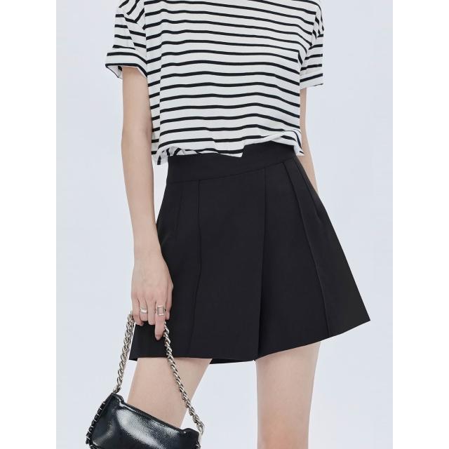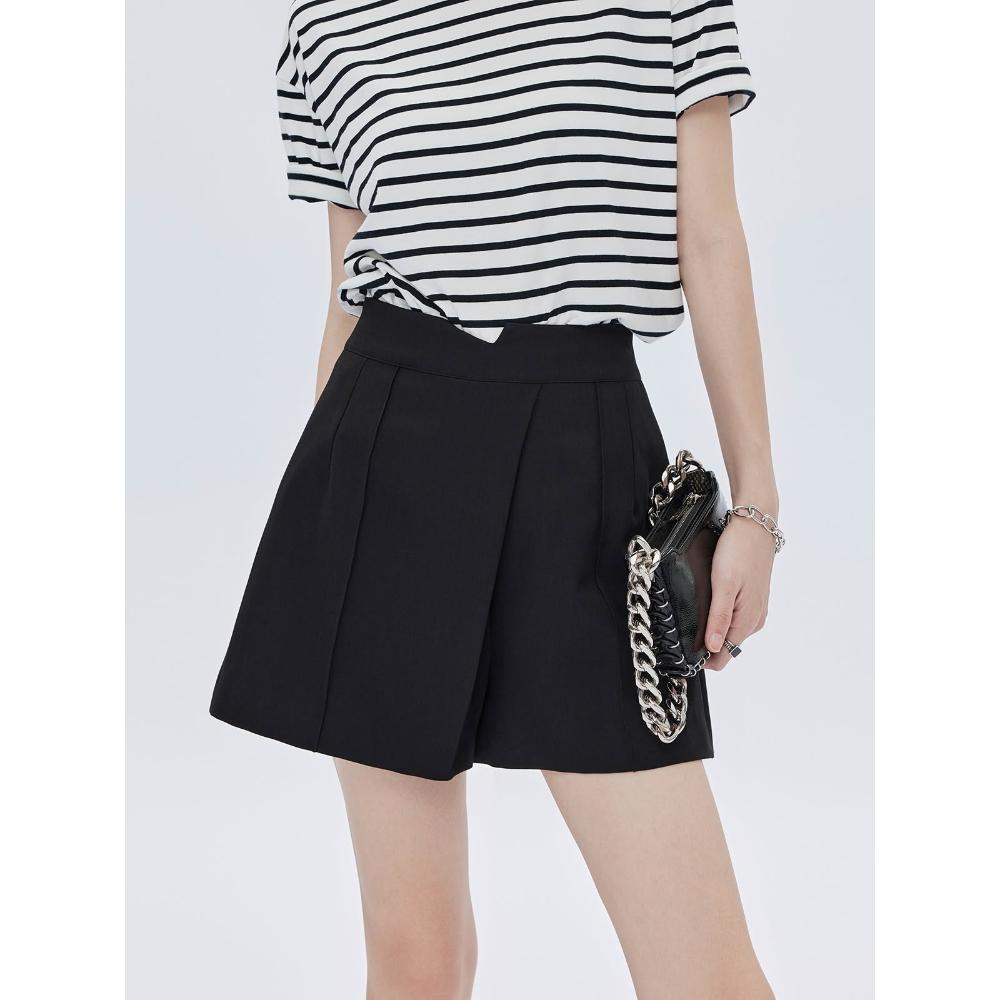 不對稱西裝褲裙寬鬆休閒潮顯瘦闊腿A字黑色短褲女2025新款高腰夏