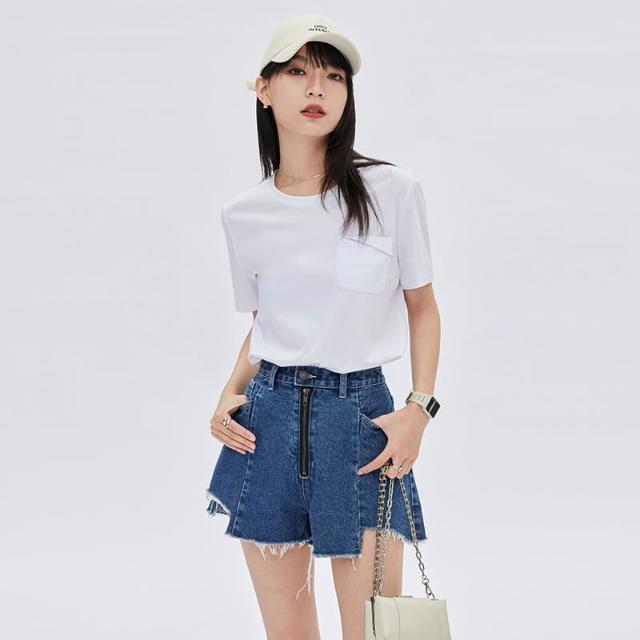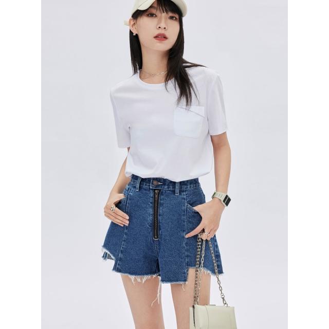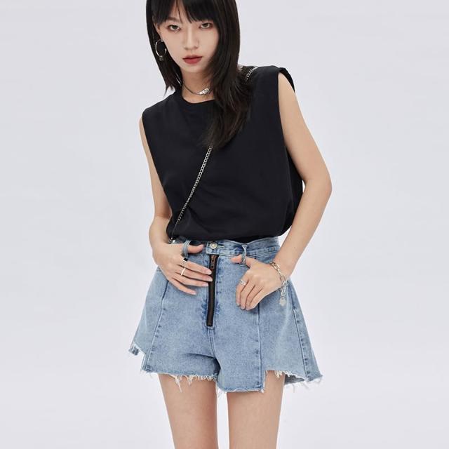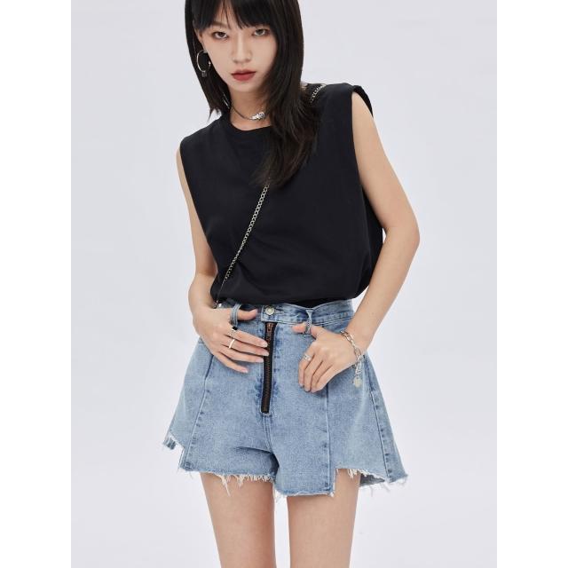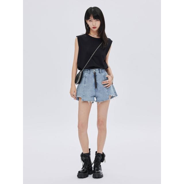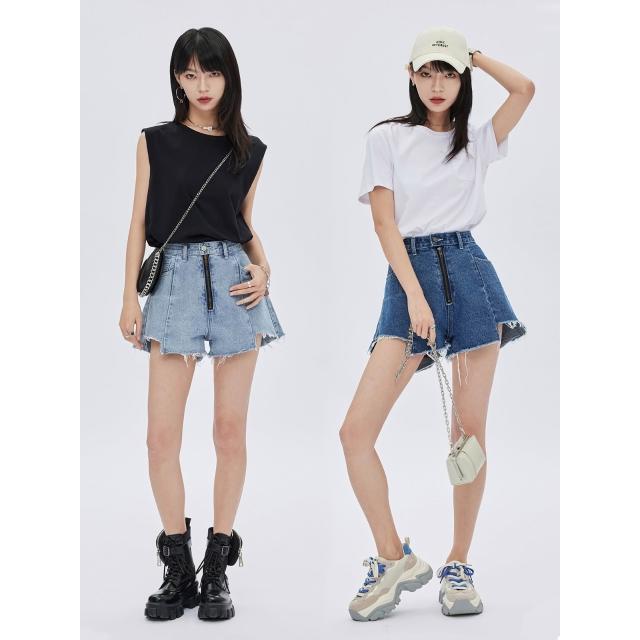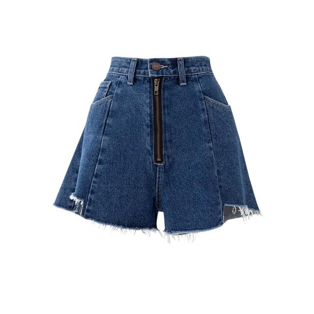 不規則拉絲毛邊拉鍊頭潮2025新款夏季深藍鹽系牛仔短褲女小衆設計感