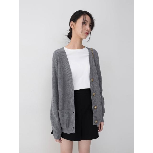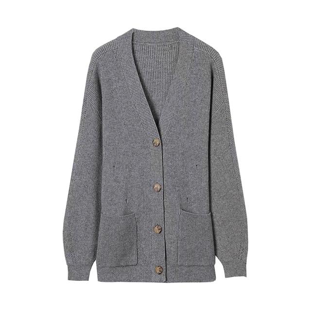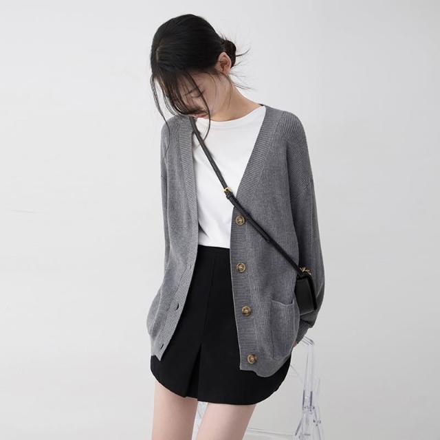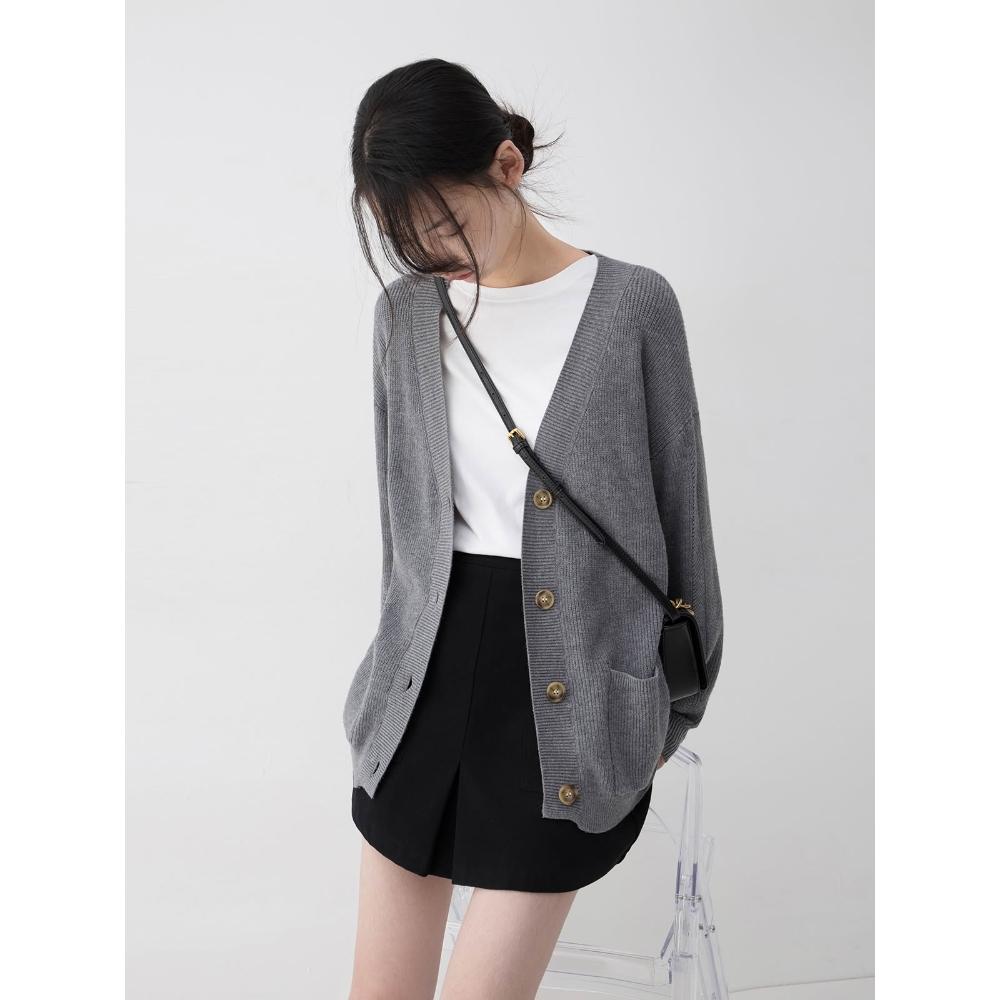 韓版落肩v領小清新線衫2025新款秋潮彈力直筒灰色針織外套外套女