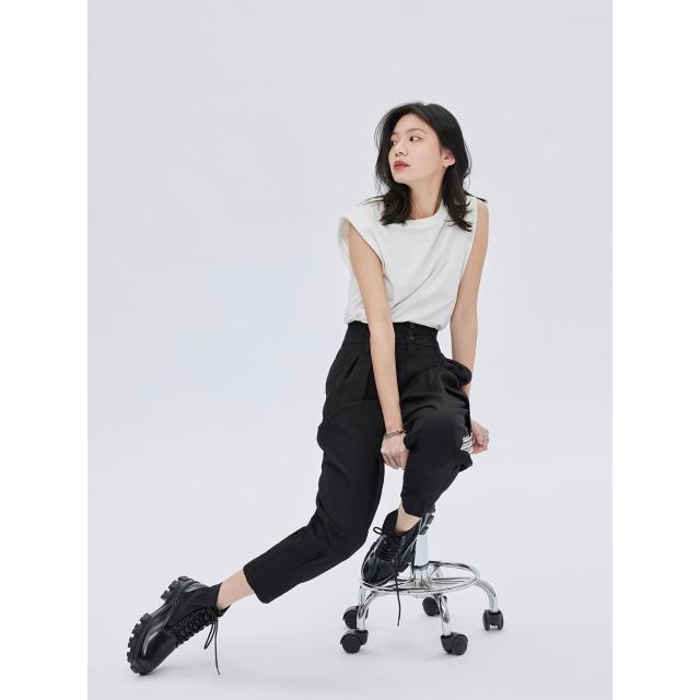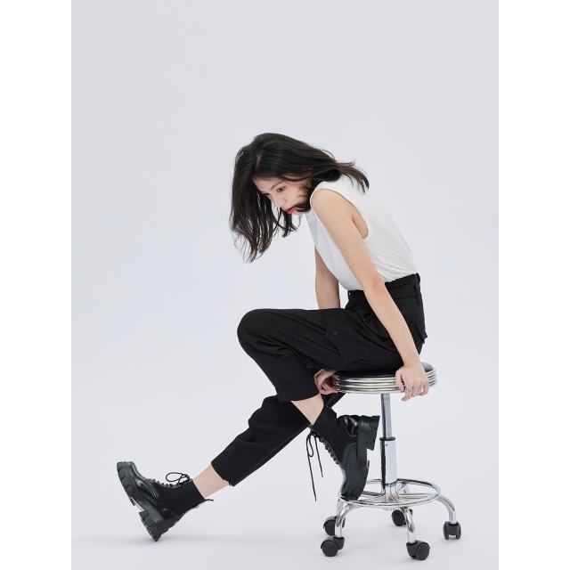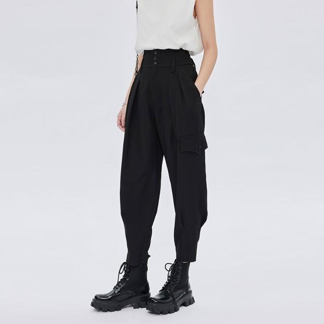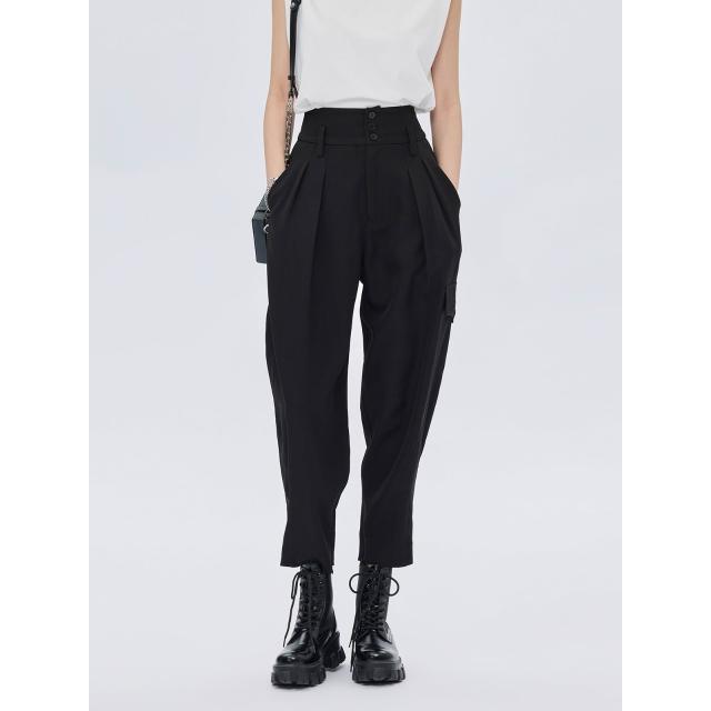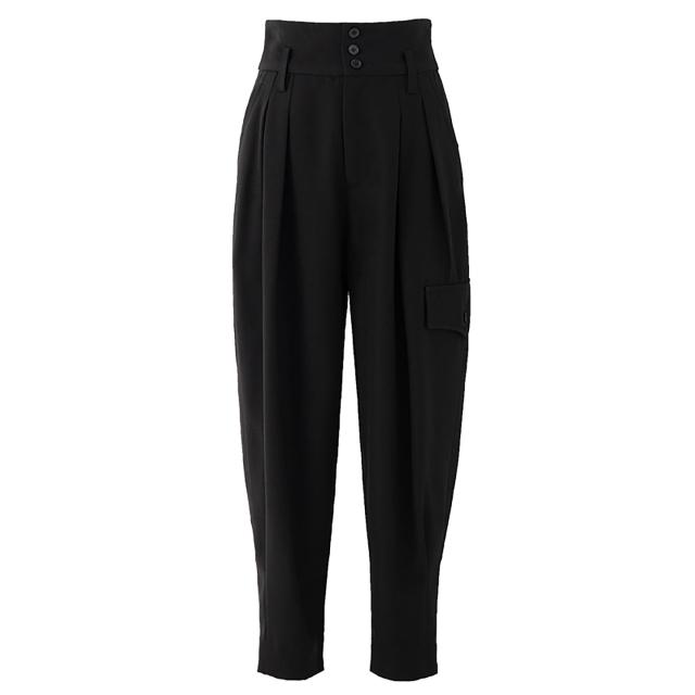 鹽系排扣哈倫高腰休閒褲垂感口袋款小腳黑色小衆設計感工作褲子女