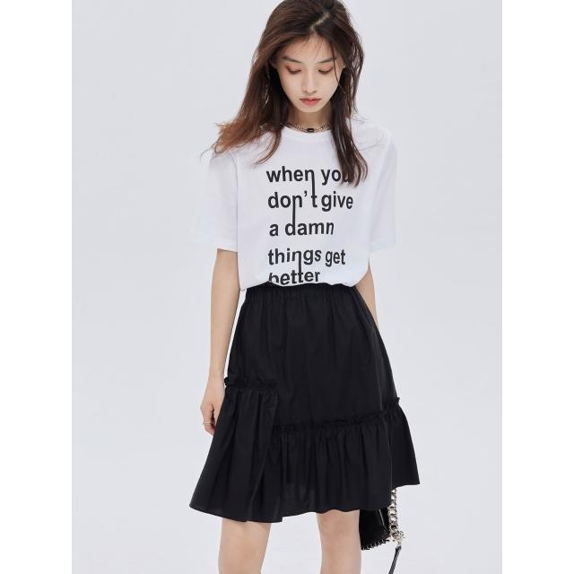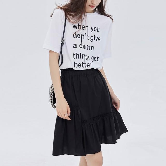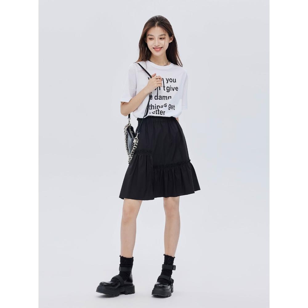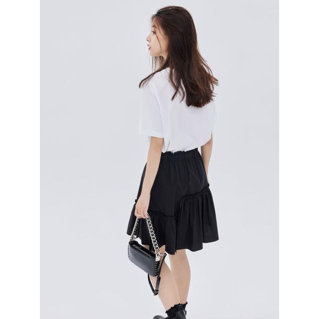 有內襯不規則荷葉邊開叉薄款設計感2025新款鬆緊腰黑色a字短裙