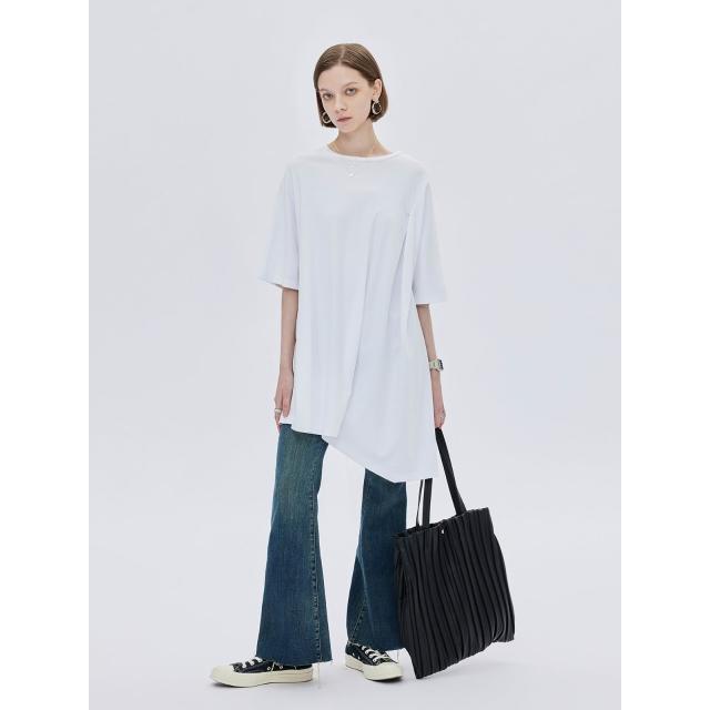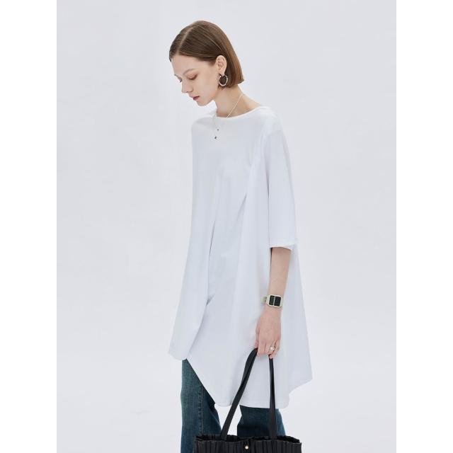不規則蝙蝠袖白色t恤短裙寬鬆休閒圓領五分袖洋裝夏季2025新款