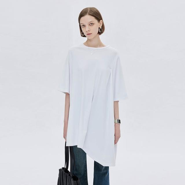 不規則蝙蝠袖白色t恤短裙寬鬆休閒圓領五分袖洋裝夏季2025新款