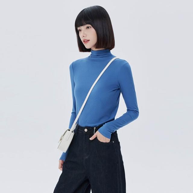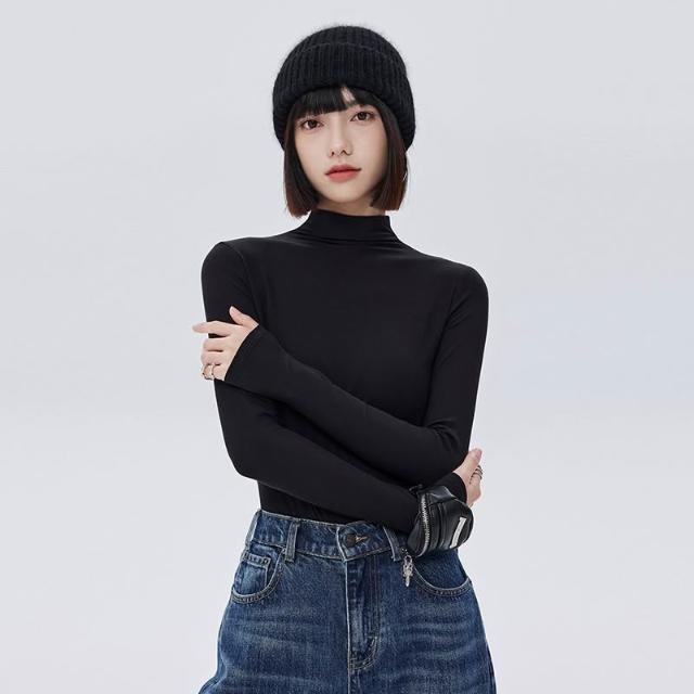 桑蠶絲黑色打底衫半高領彈力修身天藍色長袖針織毛衣女2025新款秋款