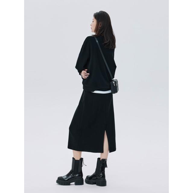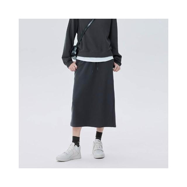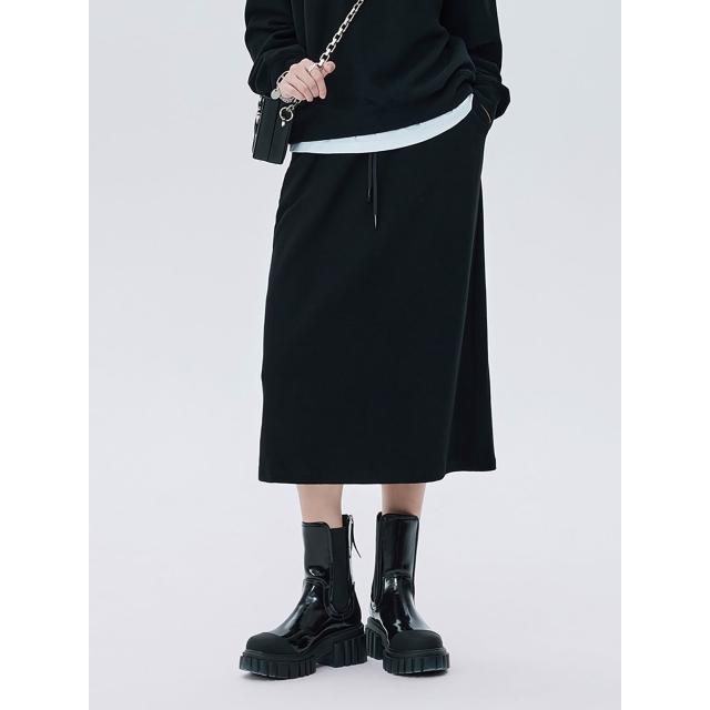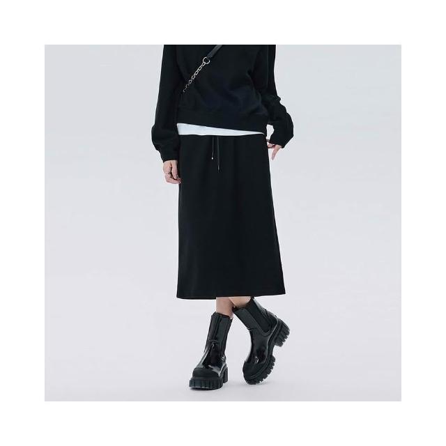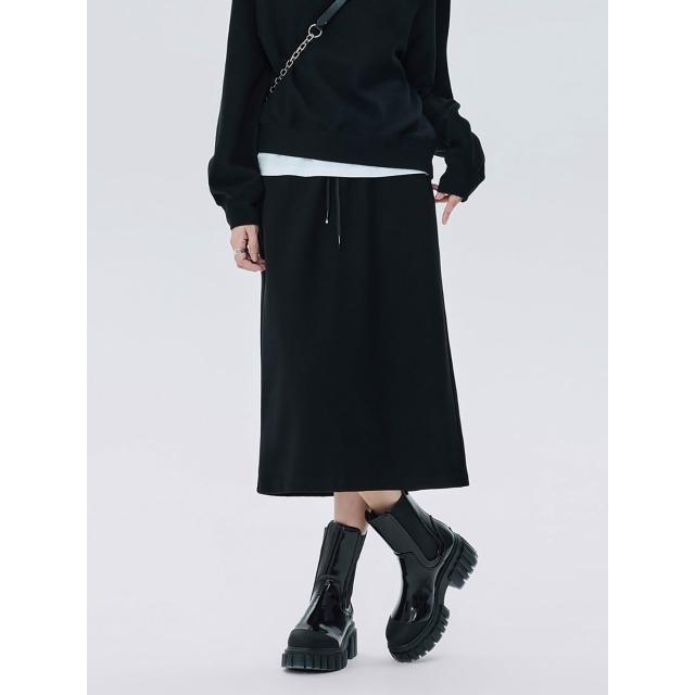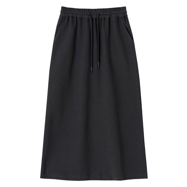 鬆緊腰抽繩開叉中長款衛裙2025新款春秋季高腰寬鬆黑色直筒短裙