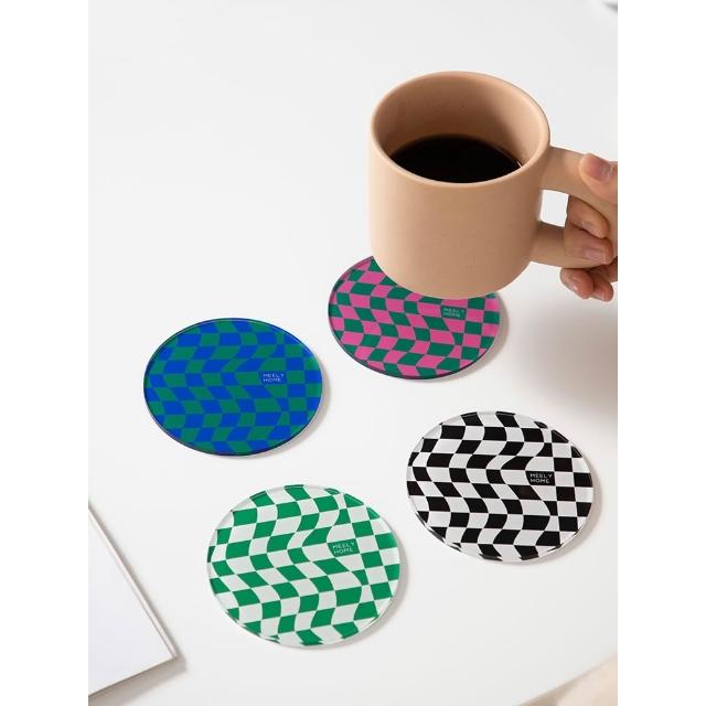 復古黑白棋盤格子杯墊設計感小衆ins風簡約亞克力隔熱墊