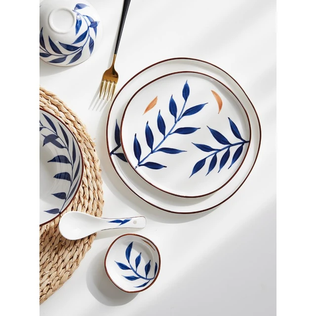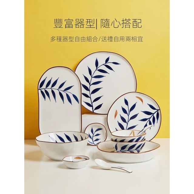 復古樹葉餐具套裝異形盤子碗馬克杯飯碗湯碗魚盤碟子組合