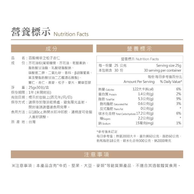 自然時記百穀精華之松子杏仁(25gx30包/盒)
