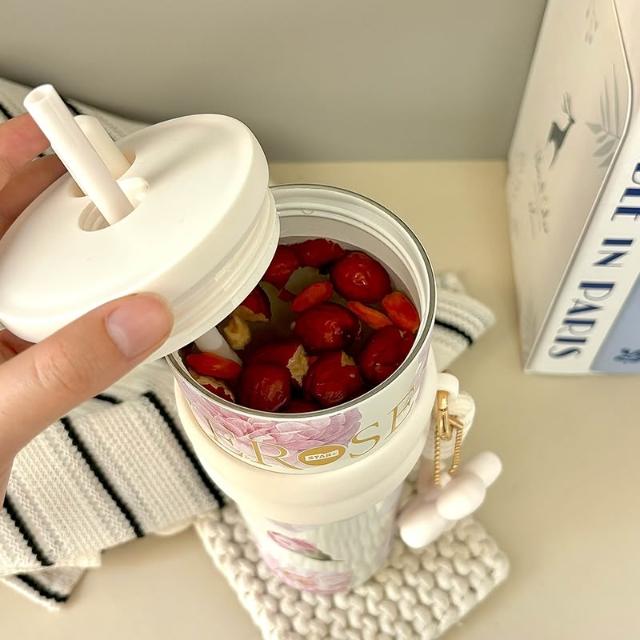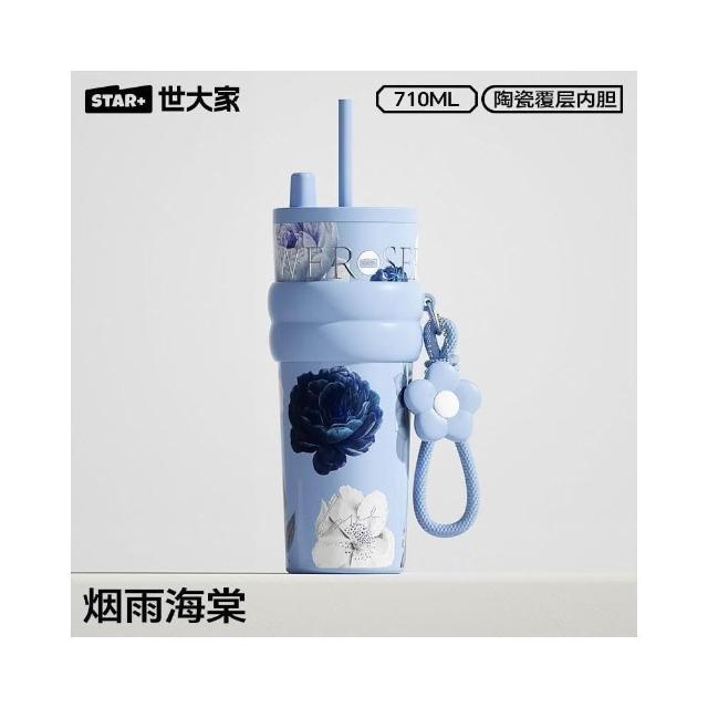 世大家繁花極光保溫杯女生高顏值2025新款710ml大容量316不鏽鋼陶瓷內膽吸管水杯生日禮物保冰杯 珍珠奶茶咖啡杯