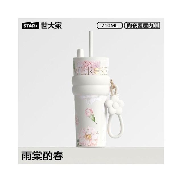 世大家繁花極光保溫杯女生高顏值2025新款710ml大容量316不鏽鋼陶瓷內膽吸管水杯生日禮物保冰杯 珍珠奶茶咖啡杯