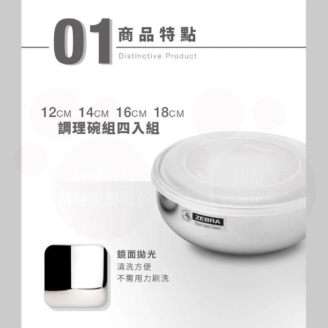 ZEBRA 斑馬牌 304不鏽鋼 SMART 低型 調理碗 4入 12+14+16+18CM 沙拉碗 保鮮碗 四入