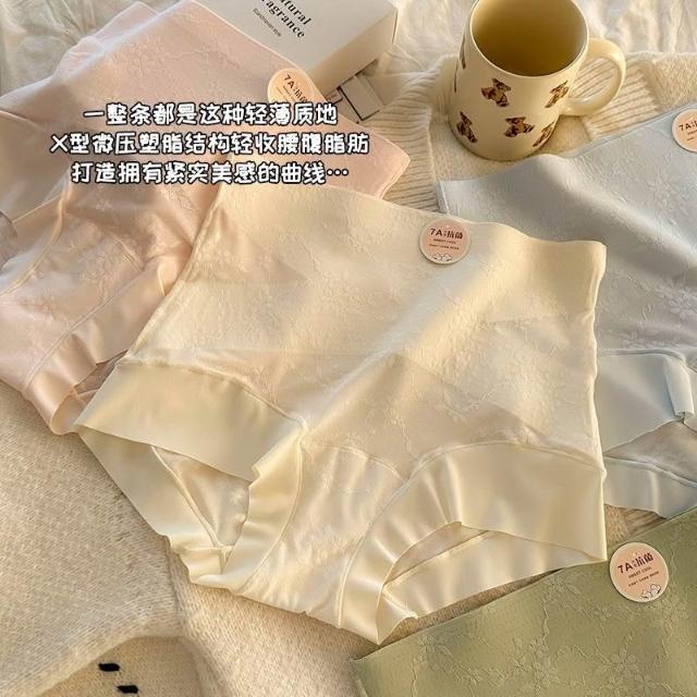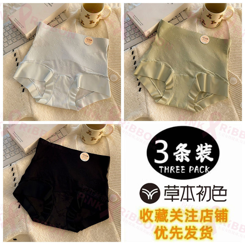 灣出貨 草本初色【7A抗菌100%純棉襠裸感貼膚內褲女 高腰收腹透氣鏤空三角褲