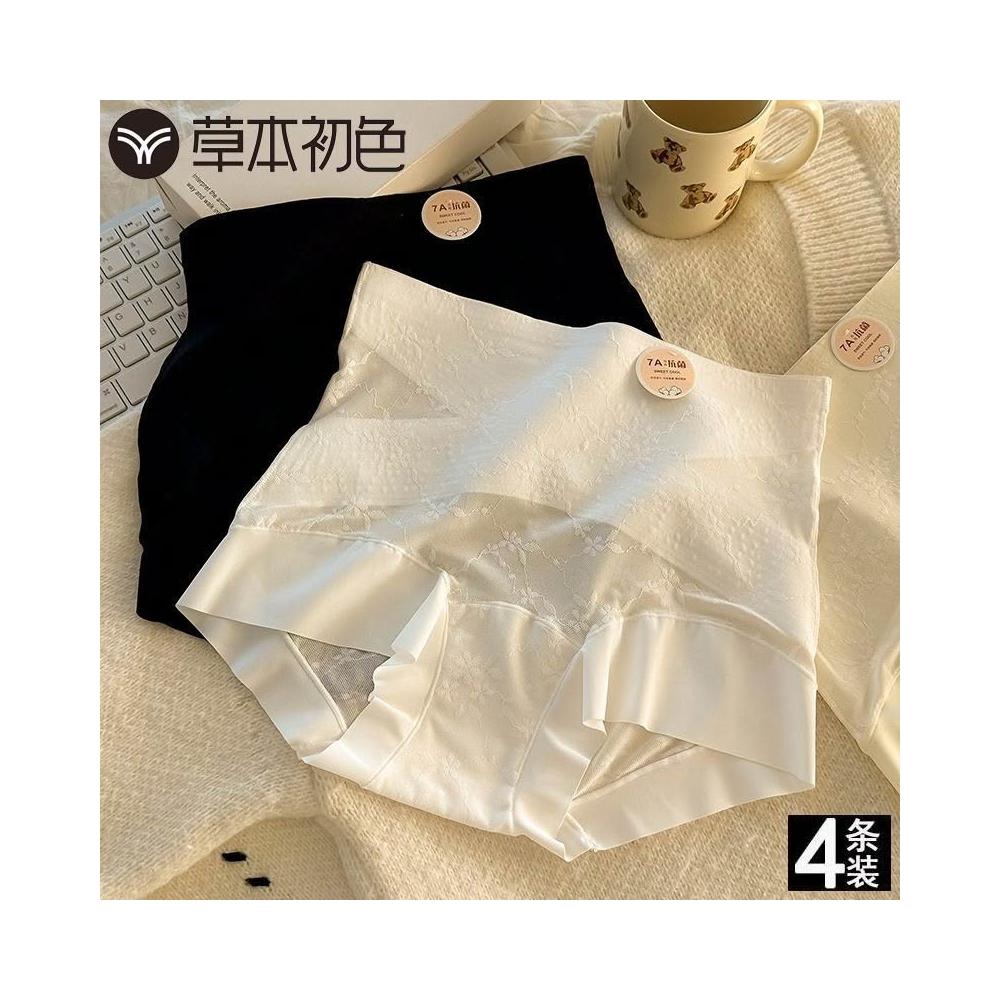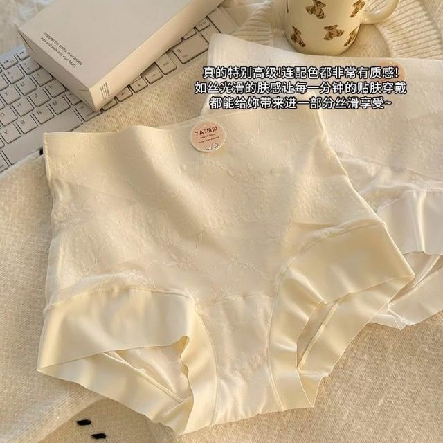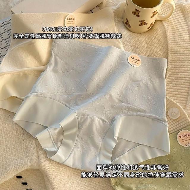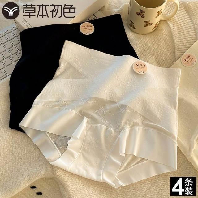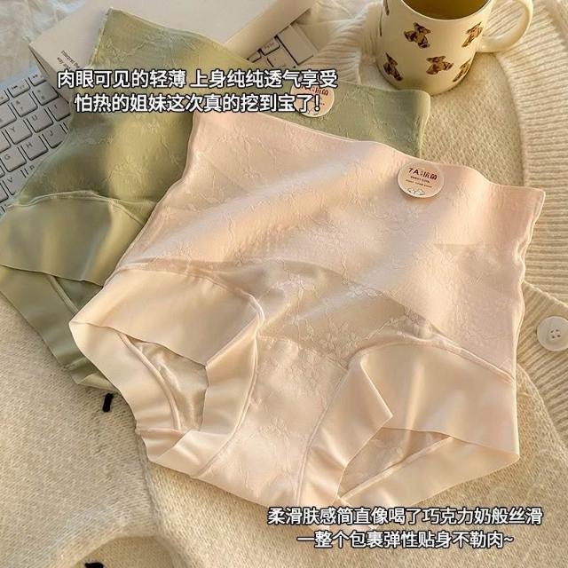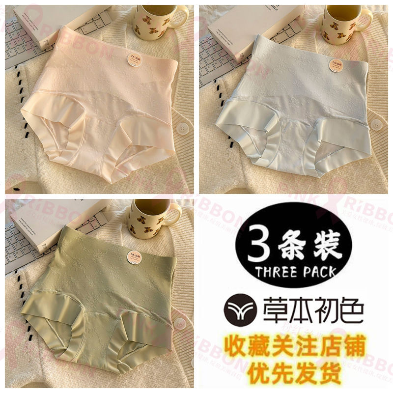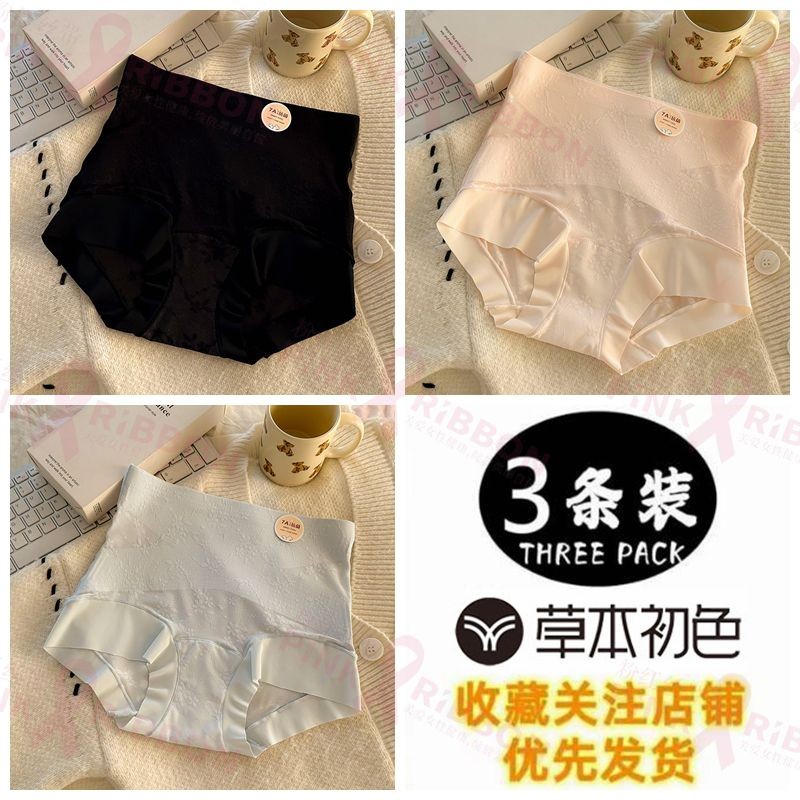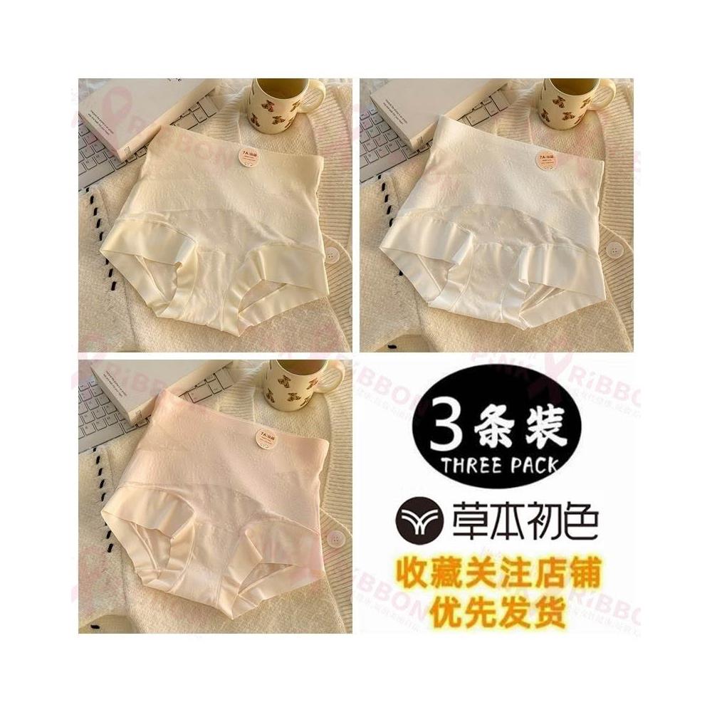 灣出貨 草本初色【7A抗菌100%純棉襠裸感貼膚內褲女 高腰收腹透氣鏤空三角褲