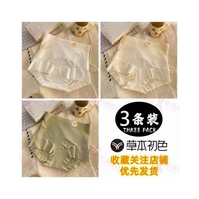 灣出貨 草本初色【7A抗菌100%純棉襠裸感貼膚內褲女 高腰收腹透氣鏤空三角褲