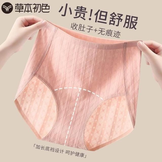 灣出貨 精選内褲 【3.1萬人好評草本初色純棉內褲女無痕高腰收腹褲100%全棉抗菌檔舒適女士三角褲