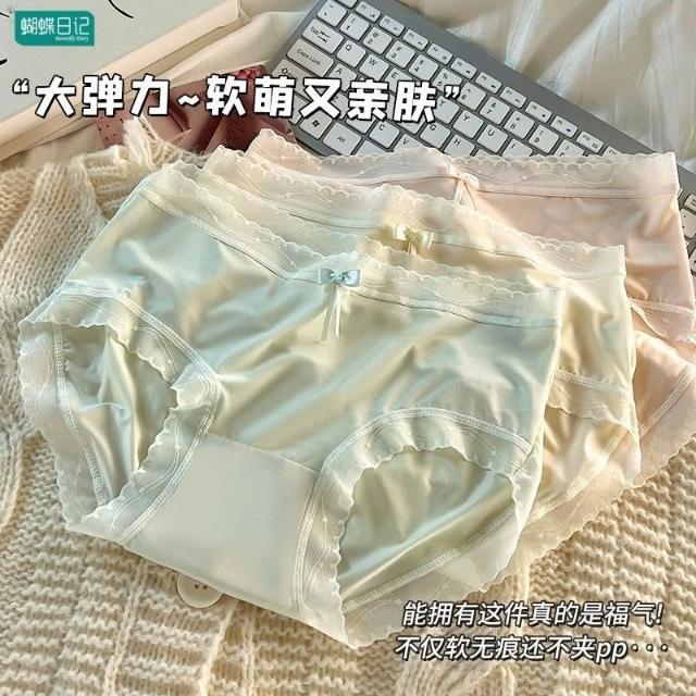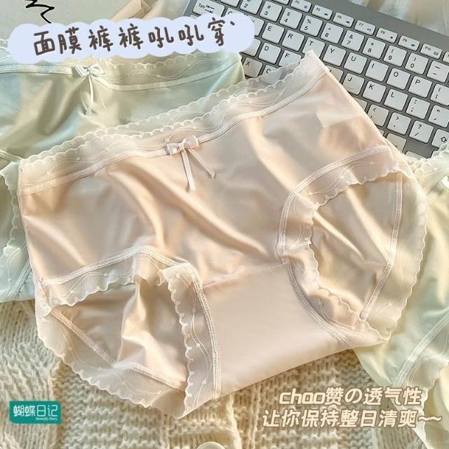 灣出貨 【店鋪熱銷蝴蝶日記無痕冰絲女士內褲7A抑菌全棉底檔抗菌少女內褲涼感三角褲