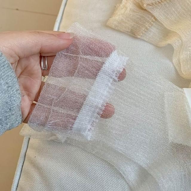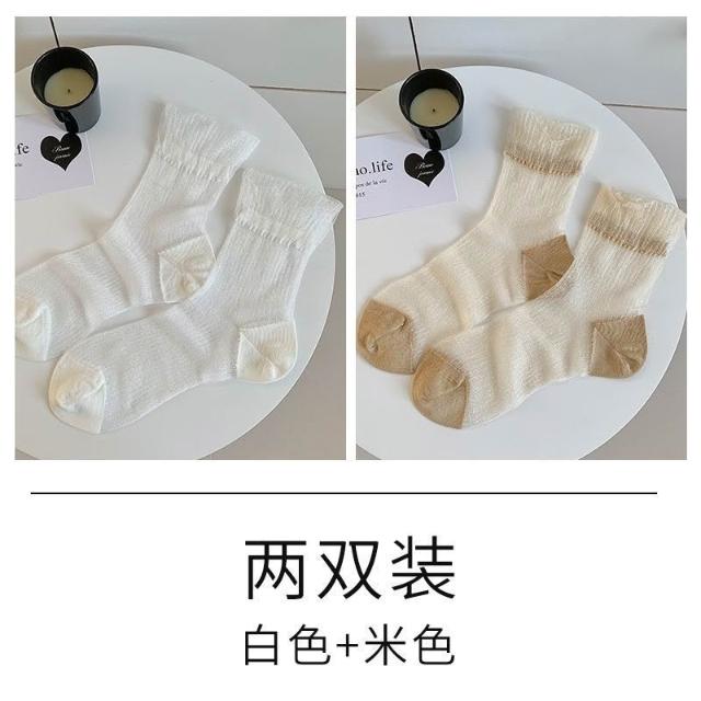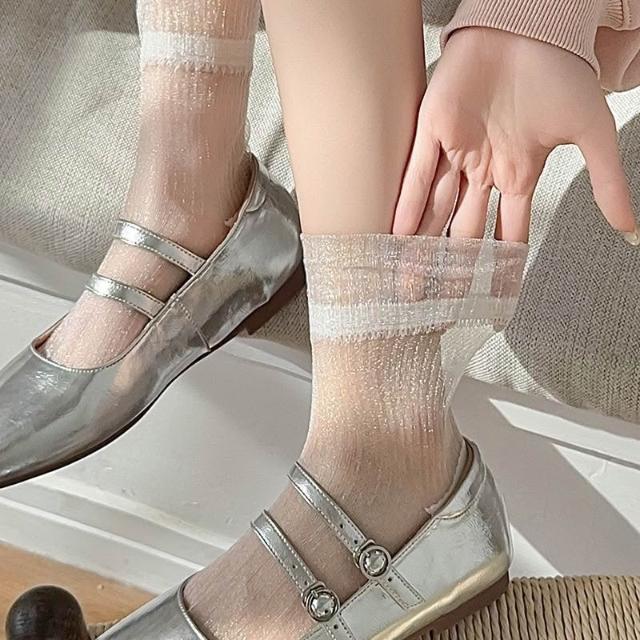 台灣出貨 法式瑪麗珍鞋襪子 蕾絲夏季薄款芭蕾風 夏天中筒玻璃絲水晶襪長筒 薄款透明蕾絲襪