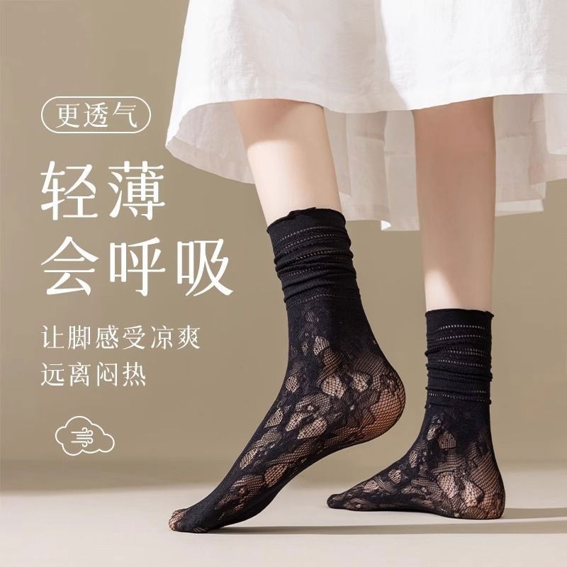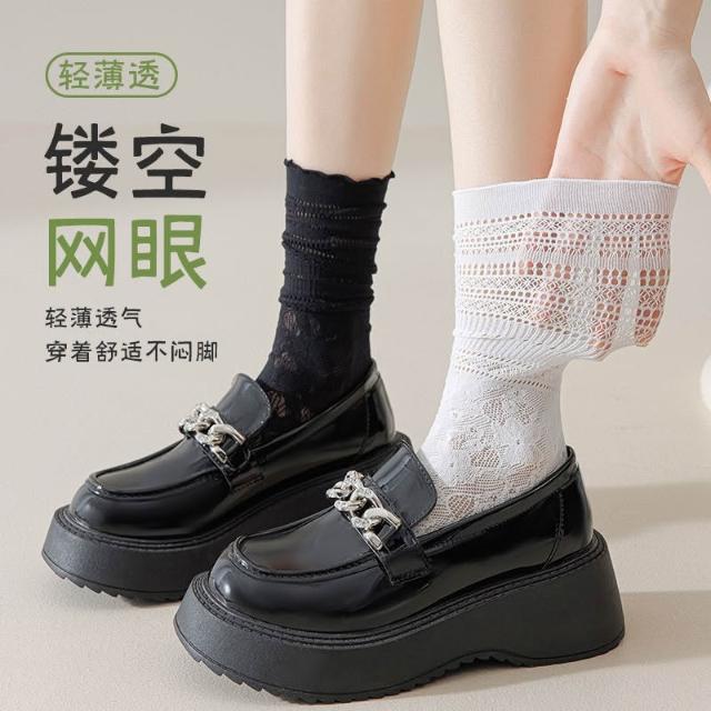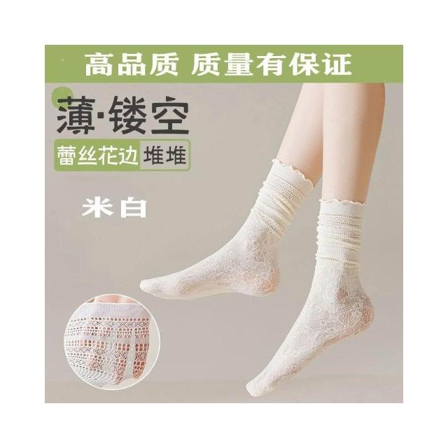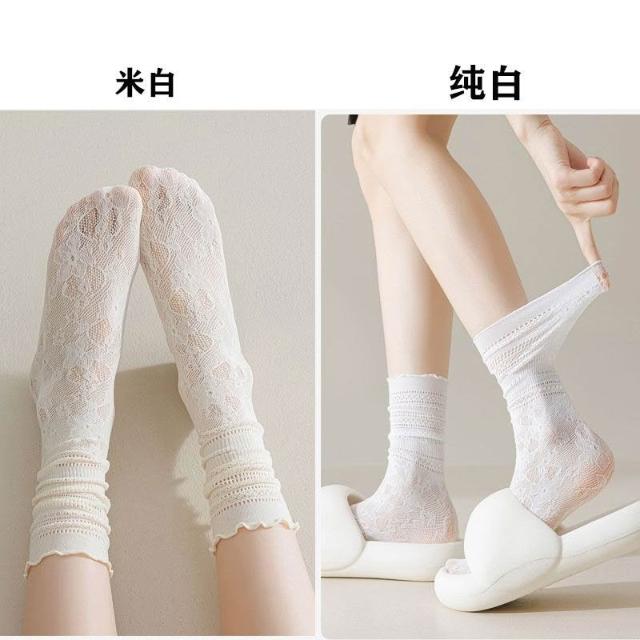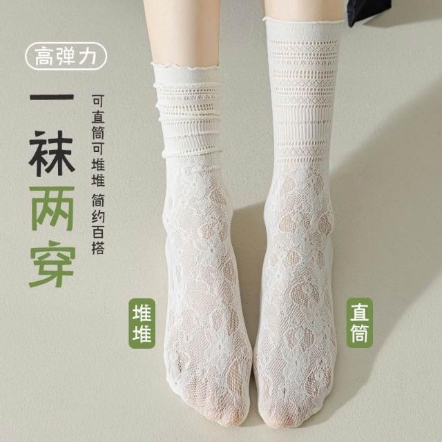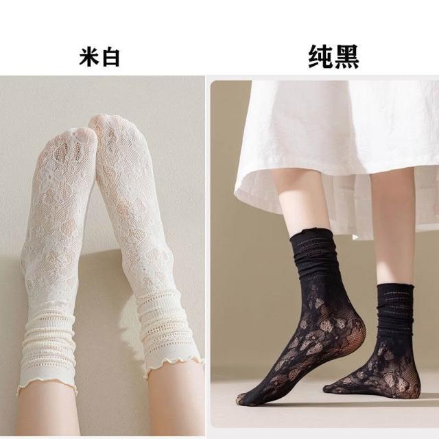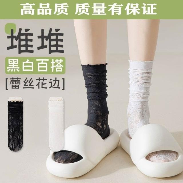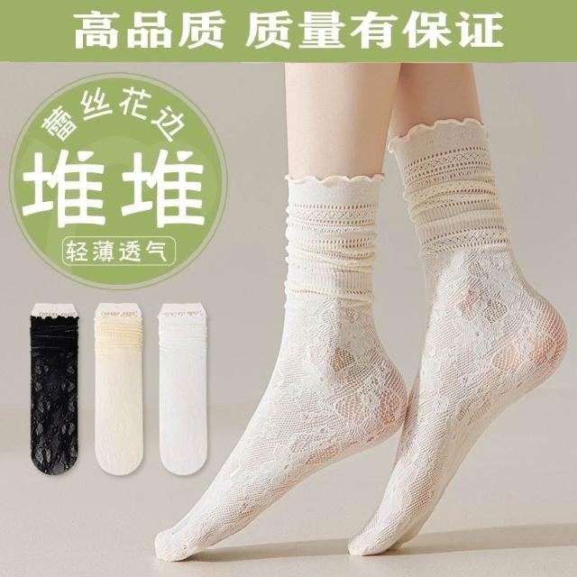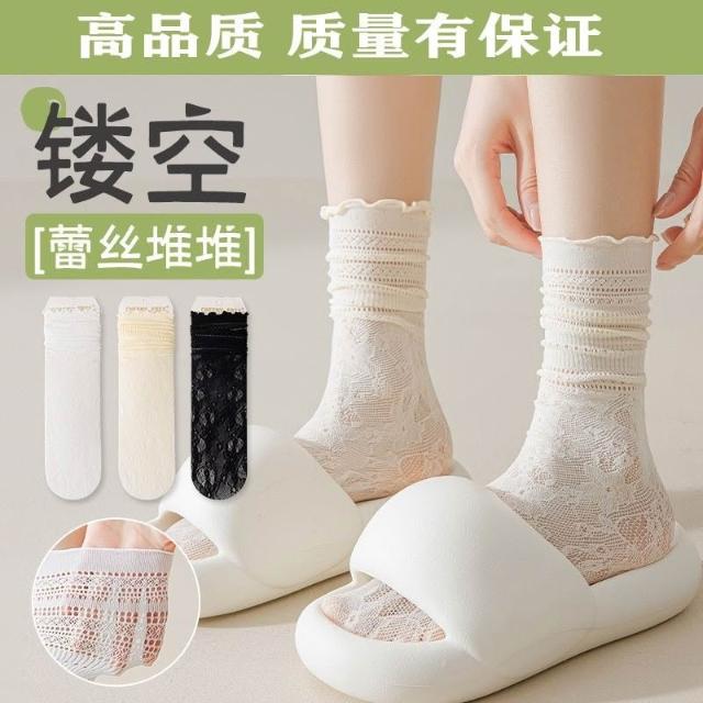 台灣出貨 蕾絲襪子女夏學生鏤空黑白色中筒襪薄款透氣日系jk堆堆襪ins短襪