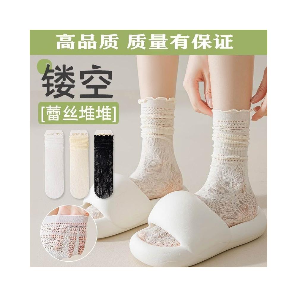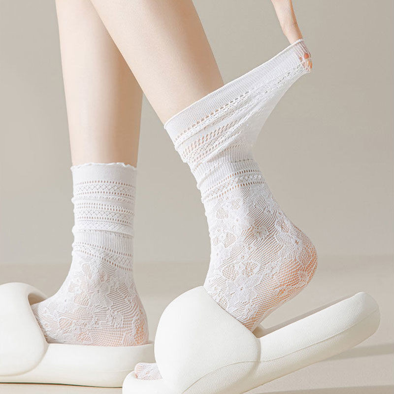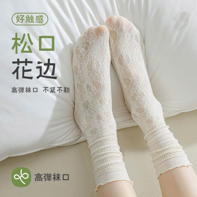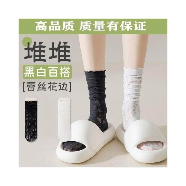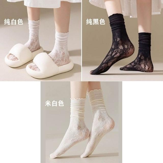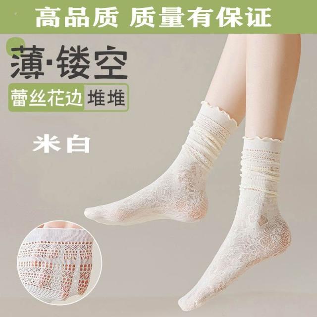 台灣出貨 蕾絲襪子女夏學生鏤空黑白色中筒襪薄款透氣日系jk堆堆襪ins短襪