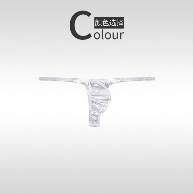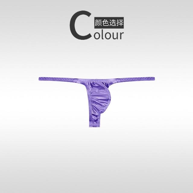 冰絲油亮彈力丁字褲 低腰性感火辣男內褲 絲滑貼身t褲 素色u凸三角褲