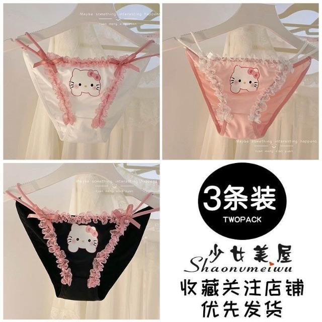 台灣出貨/日系可愛花邊內褲 鏤空兩邊掛腰細邊蕾絲蝴蝶結性感內褲 女生卡通蕾絲邊三角褲1