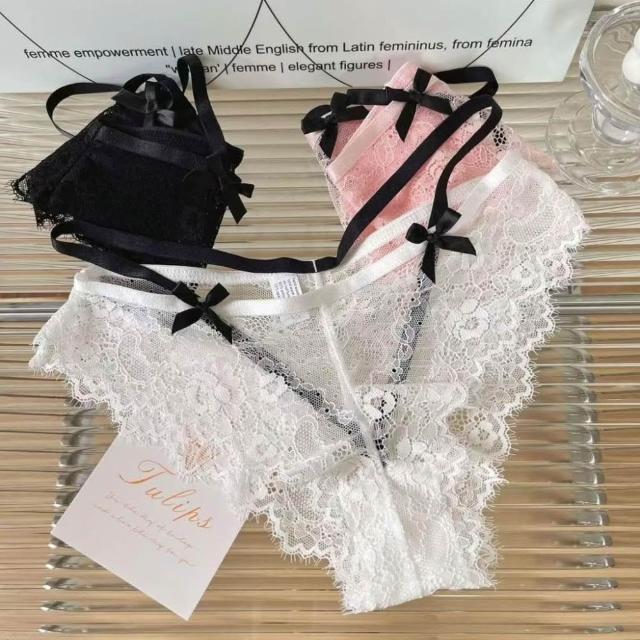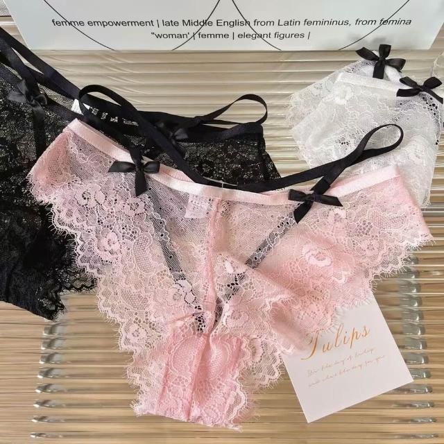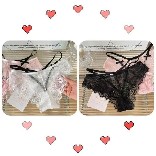 台灣出貨/日系純欲甜美可愛少女粉色蕾絲內褲綁帶蝴蝶結鏤空小心機三角褲女