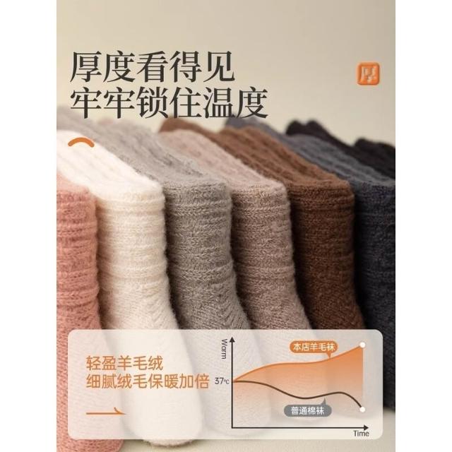 台灣出貨/日系純色羊毛中筒襪 堆堆襪 女襪 羊毛襪 雪地襪 襪子 毛巾襪 中筒襪羊毛襪子女秋冬款中筒襪加絨加厚保暖冬季美