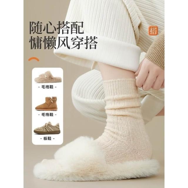 台灣出貨/日系純色羊毛中筒襪 堆堆襪 女襪 羊毛襪 雪地襪 襪子 毛巾襪 中筒襪羊毛襪子女秋冬款中筒襪加絨加厚保暖冬季美