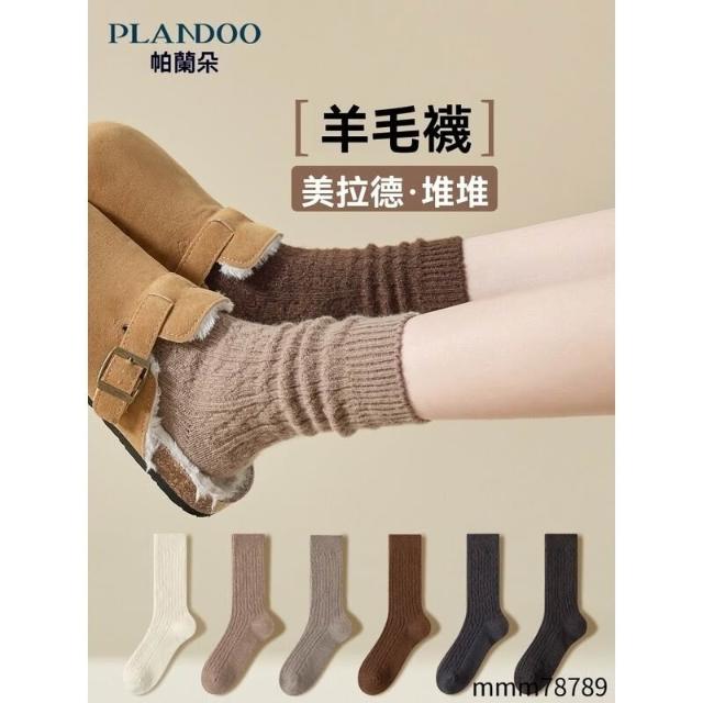 台灣出貨/日系純色羊毛中筒襪 堆堆襪 女襪 羊毛襪 雪地襪 襪子 毛巾襪 中筒襪羊毛襪子女秋冬款中筒襪加絨加厚保暖冬季美