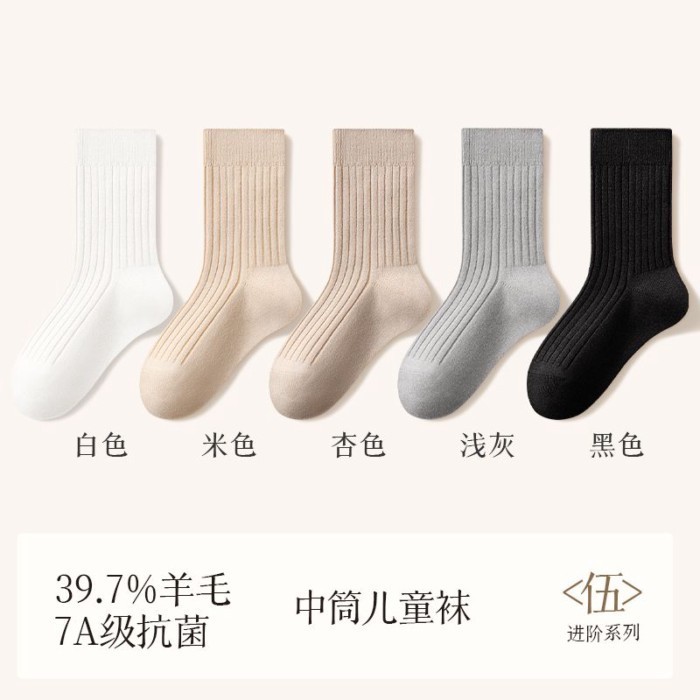 台灣出貨/2026新款兒童襪子秋冬羊毛襪大童抗菌吸汗無骨襪青少年長襪女童保暖...兒童羊毛襪