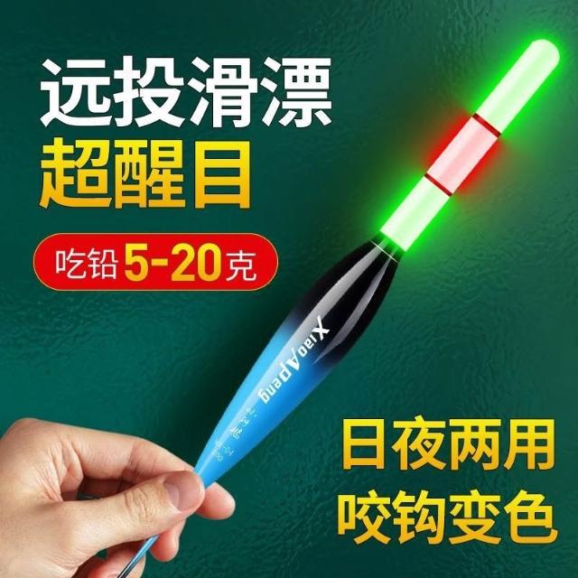🔥魚漂夜光高靈敏遠投淺水大物漂咬鉤變色日夜醒目兩用電子浮漂加粗