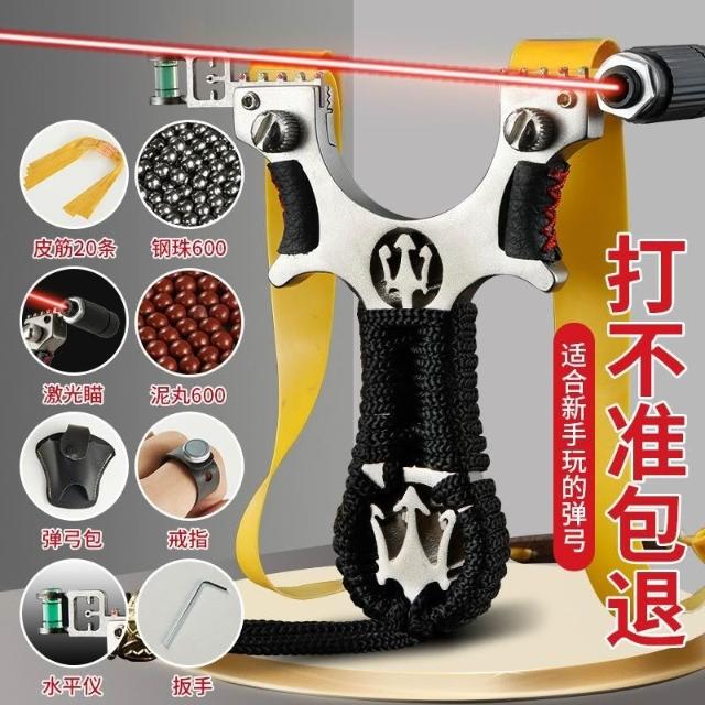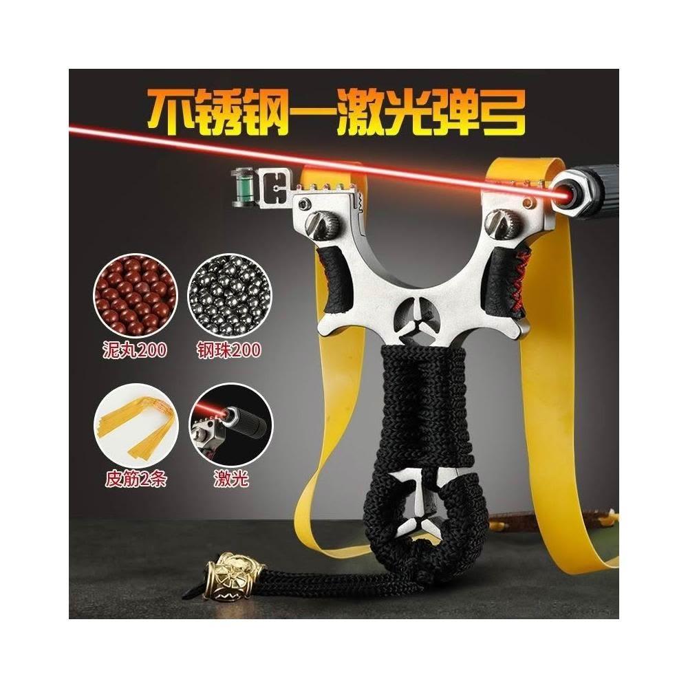 🦈不空軍漁具店🔥不銹鋼激光瞄準彈弓紅外線彈工快壓扁皮筋彈工架高精準大威力彈弓