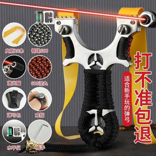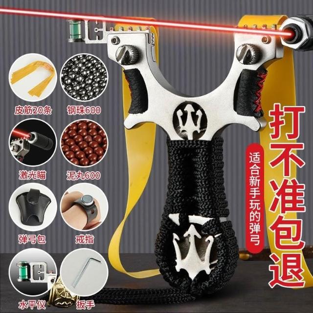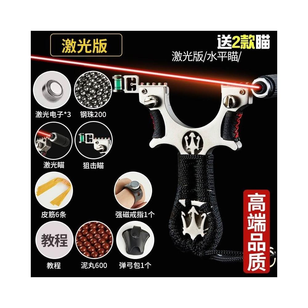 🦈不空軍漁具店🔥不銹鋼激光瞄準彈弓紅外線彈工快壓扁皮筋彈工架高精準大威力彈弓