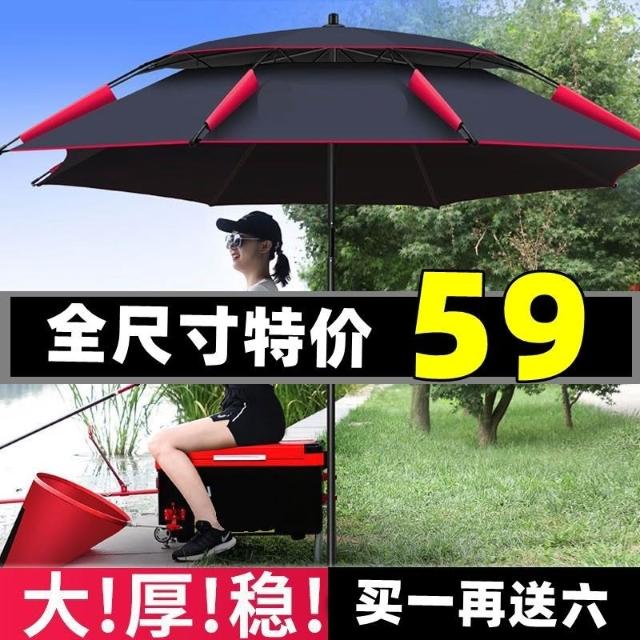 不空軍漁具店🔥防曬新款遮陽傘萬向釣魚暴雨專用加厚黑膠釣傘加粗遮陽戶外雨傘