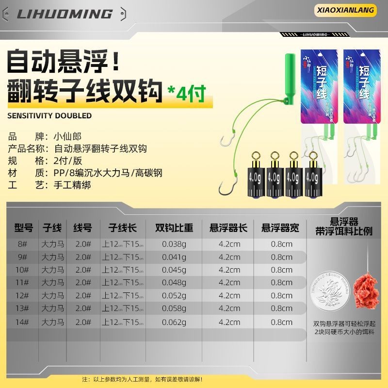 🦈不空軍漁具店 小仙郎子線自動懸浮器雙鉤PE大力馬防纏繞水庫野釣鯽鯉防跑魚鉤
