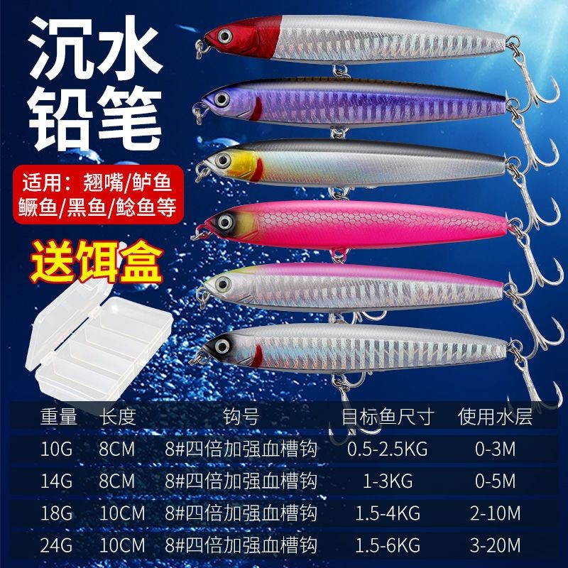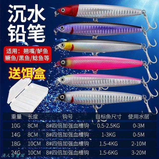 🎣不空軍漁具店 路亞沉水鉛筆翹嘴假餌遠投升級二代淡水路亞餌翹嘴專用假魚餌套裝