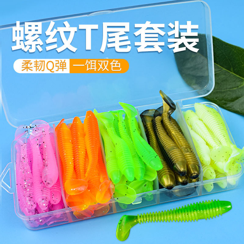 🦈不空軍漁具店 路亞螺紋T尾軟餌倒釣浮水假餌釣鱸魚鱖魚翹嘴德州緩沉螺旋小軟蟲