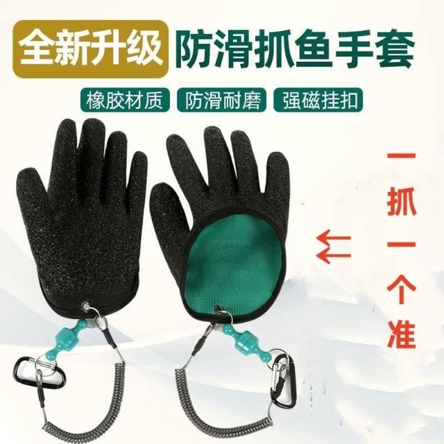 �不空軍漁具店🔥【磁吸輕松戴抓魚手套男士防刺防水海釣夏季釣魚毛巾專用路亞專業垂釣防割防滑