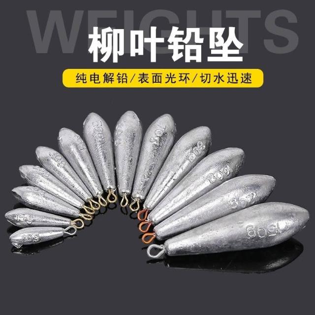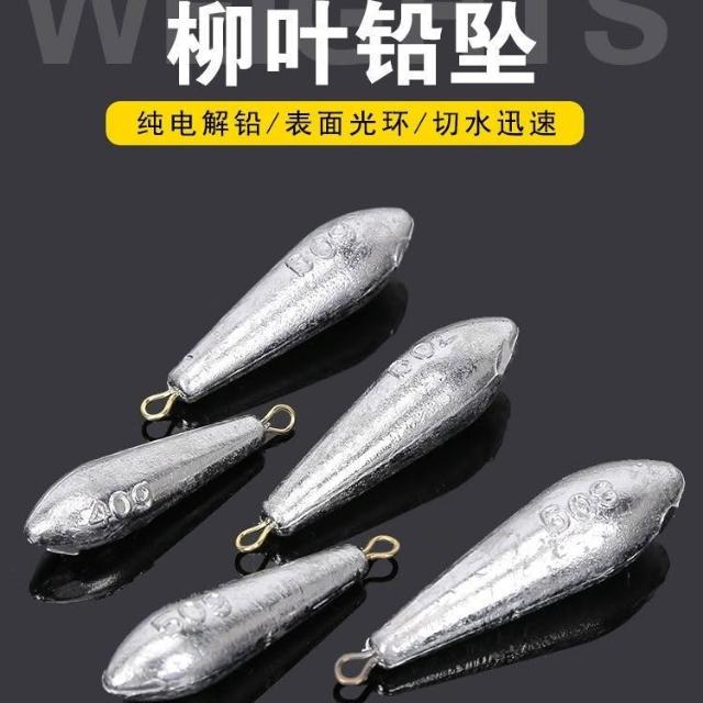 🦈不空軍漁具店 遠投柳葉型水滴型鉛墜串鉤鉛墜吊墜帶環海竿拋竿鉛坨釣魚漁具用品