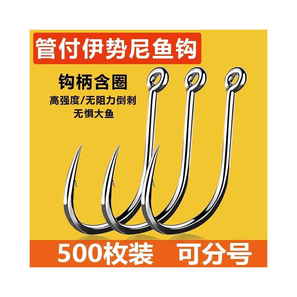 🦈不空軍漁具店 500枚管付伊勢尼魚鉤散裝非進口有倒刺帶環帶孔帶圈垂釣釣魚鉤漁