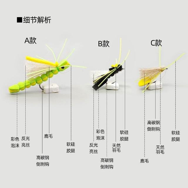 🦈不空軍漁具店 蝗蟲仿真飛蠅鉤 飛釣路亞假餌擬餌浮水飛蠅餌 陸生昆蟲仿生餌