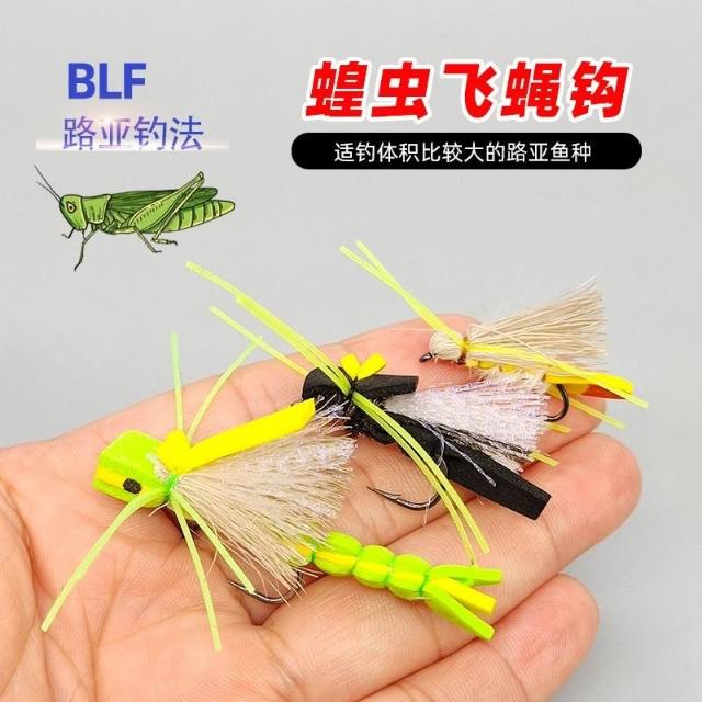 🦈不空軍漁具店 蝗蟲仿真飛蠅鉤 飛釣路亞假餌擬餌浮水飛蠅餌 陸生昆蟲仿生餌
