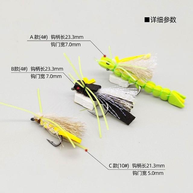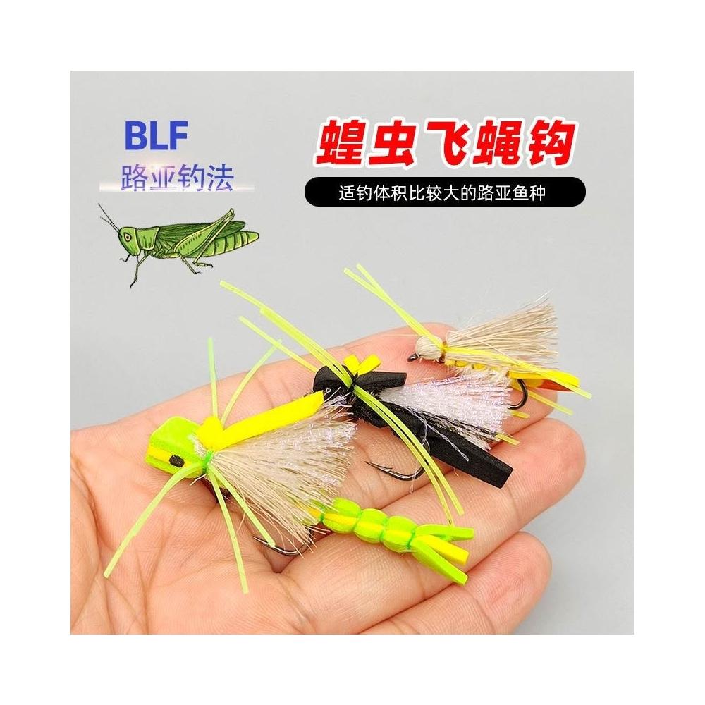 🦈不空軍漁具店 蝗蟲仿真飛蠅鉤 飛釣路亞假餌擬餌浮水飛蠅餌 陸生昆蟲仿生餌
