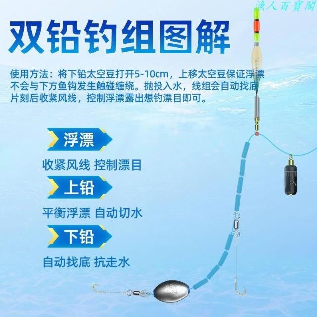 🦈不空軍漁具店 新款雙鉛路滑線組帶漂主線免調漂抗走水自動找底磯竿遠投成品套裝