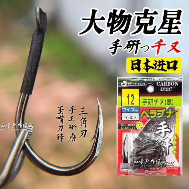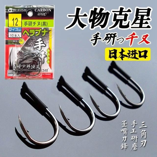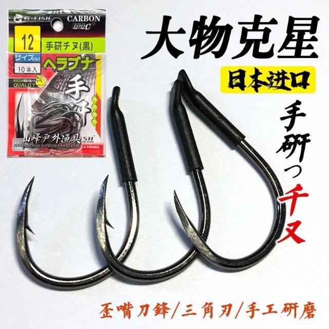 🦈不空軍漁具店🔥正品日本進口手研千又有刺歪嘴釣魚鉤鯉魚草魚碳鋼黑大魚釣鉤漁具