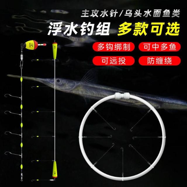 🦈不空军渔具店🔥【多鉤防纏】水針魚釣組浮釣馬步魚串鉤七星漂纖維桿鶴魚浮水面防纏繞水針神器