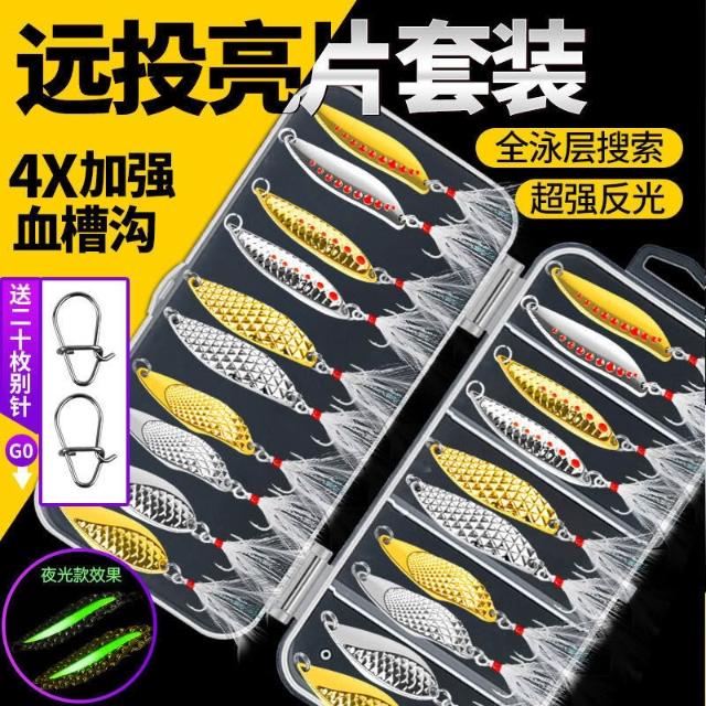 不空军渔具店 亮片假餌路亞瓜子亮片混搭水蛭平振專用假餌套裝一整套夜光組閤