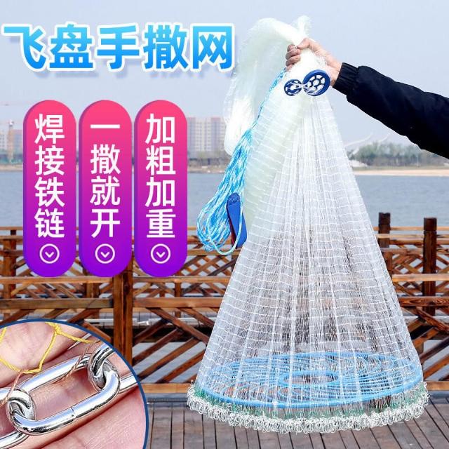不空军渔具店 大飛盤式油絲拉絲拋網鋼絲拉綫焊接鐵鏈圓盤粗綫魚網撒網捕魚漁網