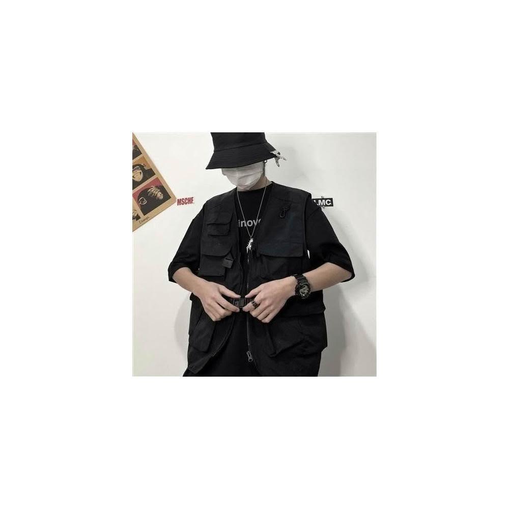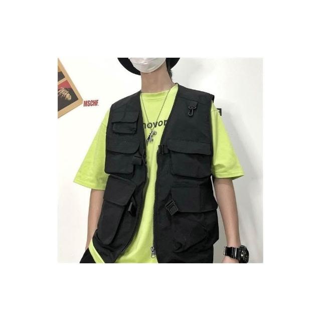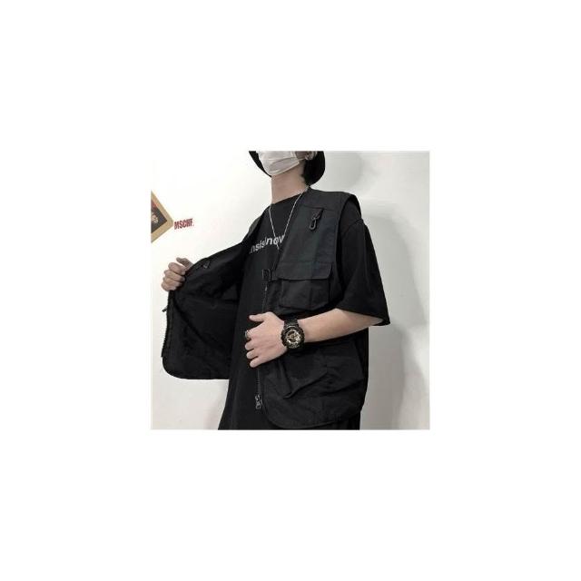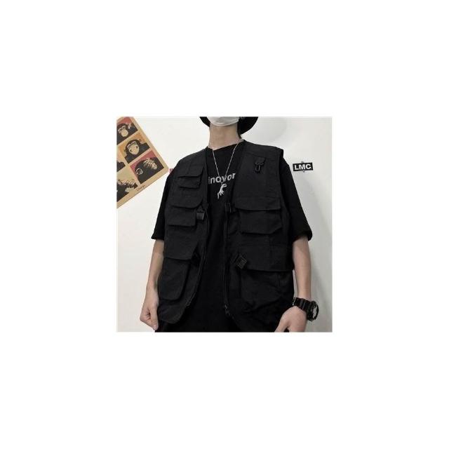 不空军渔具店 工裝黑色背心 戰術背心 寬鬆馬甲 薄款外套 潮流男女 無袖棉服