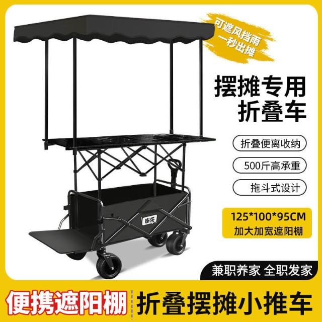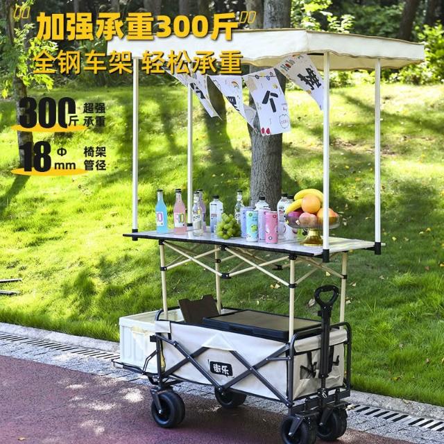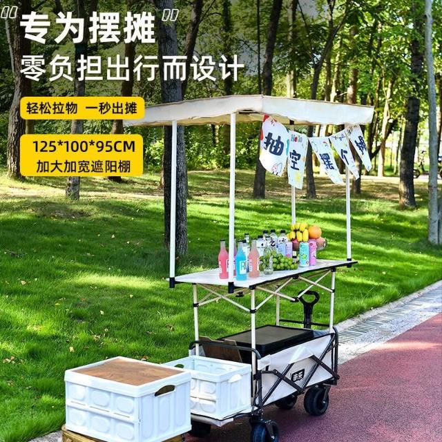 不空军渔具店 折疊推車 擺攤推車 露營車 移動防雨遮陽擺地攤升降露營小推車戶外可摺疊野餐營地手拖拉便攜